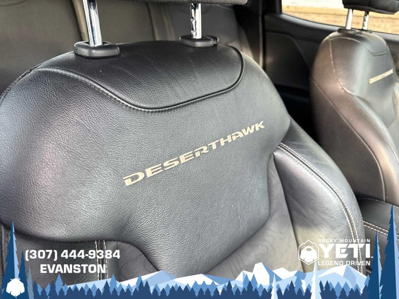 QUICK ORDER PACKAGE 27D DESERTHAWK Engine: 2.4L I4 MultiAir, Transmission: 9-Speed 948TE Automatic, Deserthawk Decals, Rear View Auto Dim Mirror, Rubber Cargo Compartment Floor Mat, Air Conditioning ATC w/Dual Zone Control, Passive Entry/Keyless GO, Remote Start System, Power 4-Way Driver Lumbar Adjust, Rock Protection Sill Rails, 40/20/40 Rear Seat w/Trunk Pass-Thru, Deserthawk Group, Power 8-Way Driver Manual 4-Way Passenger Seats, Topographical Hood Decal, MY SKY POWER/REMOVABLE SUNROOF, 6.5 NAVIGATION GROUP W/UCONNECT HD Radio, Radio: Uconnect 6.5 Nav, For Details Visit DriveUconnect.com, (Registration Required), GPS Navigation, SiriusXM Travel Link, SiriusXM Traffic, 6.5 Touchscreen Display, Remote USB Port, Uconnect Access, BEATS PREMIUM AUDIO SYSTEM, SAFETY & SECURITY GROUP Security Alarm, Blind Spot & Cross Path Detection, Tonneau Cover, TRANSMISSION: 9-SPEED 948TE AUTOMATIC (STD), ENGINE: 2.4L I4 MULTIAIR (STD).