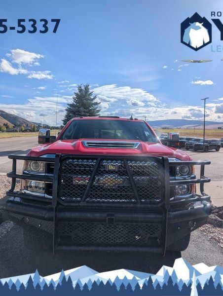 includes (JF4) power adjustable pedals, (UQA) Bose premium audio system, (UVD) heated leather-wrapped steering wheel and (UD5) Front and Rear Park Assist, LPO, ASSIST STEPS - 6 CHROMED RECTANGULAR, SEATING, HEATED AND VENTED PERFORATED LEATHER-APPOINTED FRONT BUCKET, Includes 10-way power driver and front passenger seat adjusters, including 2-way power lumbar control, 2-position driver memory, adjustable head restraints, (D07) floor console storage pockets and (K4C) wireless charging. Pickup box bed liner with bowtie logo. Liner is permanently bonded to the truck bed providing a water tight seal. The textured, non-skid surface is black in color and robotically applied. Spray-on liner covers entire bed interior surface below side rails, including tailgate, front box top rail, gage hole plugs and lower tie down loops. with seek-and-scan and digital clock, includes Bluetooth streaming audio for music and select phones; USB ports; auxiliary jack; voice-activated technology for radio and phone; and Shop with the ability to browse, select and install apps to your vehicle. Apps include Pandora, iHeartRadio, The Weather Channel and more. (445 hp [332 kW] @ 2800 rpm, 910 lb-ft of torque [1220 Nm] @ 1600 rpm) Includes capped fuel fill, (K40) exhaust brake and (K05) engine block heater. with overdrive, electronic engine grade braking and tow/haul mode, STEERING WHEEL, HEATED, LEATHER WRAPPED WITH AUDIO AND CRUISE CONTROLS.