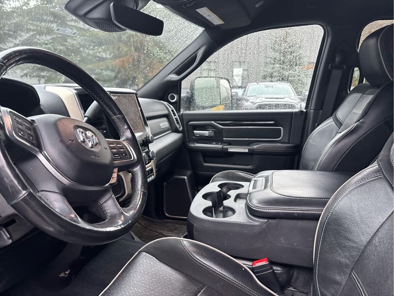 ENGINE: 6.7L I6 CUMMINS TURBO DIESEL Selective Catalytic Reduction (Urea), Dual 730 Amp Maintenance Free Batteries, Cummins Turbo Diesel Badge, Heavy Duty Engine Cooling, Supplemental Heater, RAM Active Air, 220 Amp Alternator, GVWR: 12,300 lbs, Current Generation Engine Controller, Diesel Exhaust Brake, Capless Fuel Fill w/o Discriminator, LARAMIE LEVEL 2 EQUIPMENT GROUP SiriusXM Traffic Plus, Blind Spot & Cross Path Detection, Power Chrome Tow Mirrors w/Convex Spotter & Memory, Mirror-Mounted Aux Reverse Lamps, Exterior Mirrors w/Memory, Power Adjustable Convex Aux Mirrors, Rain Sensitive Windshield Wipers, Power Adjustable Pedals w/Memory, For Details Visit DriveUconnect.com, Radio: Uconnect 4C Nav w/8.4 Display, Selectable Tire Fill Alert, GPS Navigation, Media Hub w/2 Charge Only USBs, Heated Second Row Seats, Foam Bottle Insert (Door Trim Panel), Disassociated Touchscreen Display, HD Radio, Ramcharger Wireless Charging Pad, 1-Year SiriusXM Guardian Trial, SiriusXM Travel Link, Ventilated Front Seats, Remote Tailgate Release, 17 Speaker High, TOWING TECHNOLOGY GROUP CTR Stop Lamp w/Cargo View Camera, Mirror-Mounted Aux Reverse Lamps, Surround View Camera System, Exterior Mirrors w/Memory, Power Chrome Tow Mirrors w/Convex Spotter & Memory, Trailer Reverse Guidance, Power Adjustable Convex Aux Mirrors, SAFETY GROUP Adaptive Cruise Control w/Stop, Full Speed Forward Collision Warning Plus, TRANSMISSION: 6-SPEED AUTOMATIC 68RFE Chrome Accent Shift Knob.