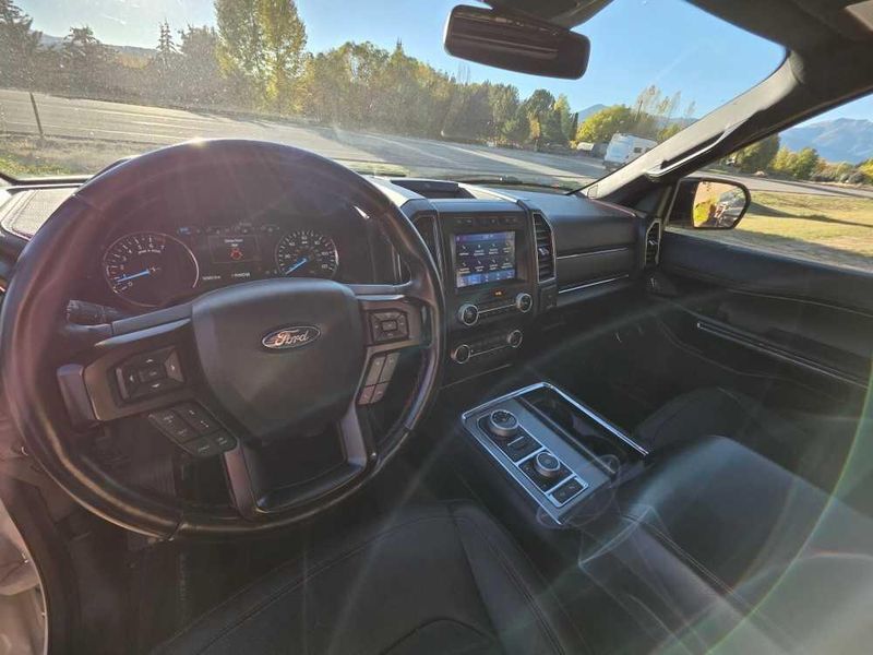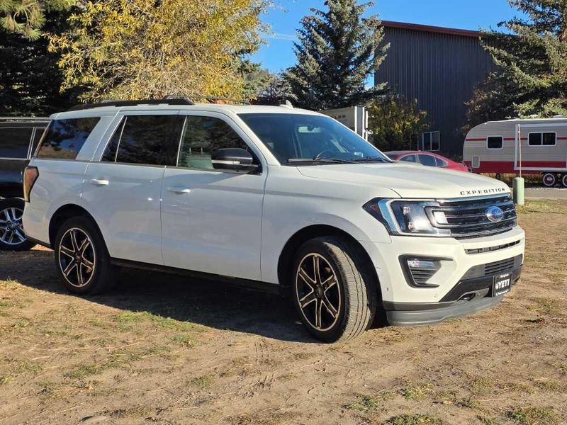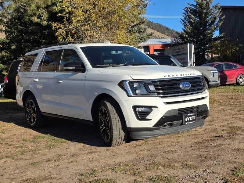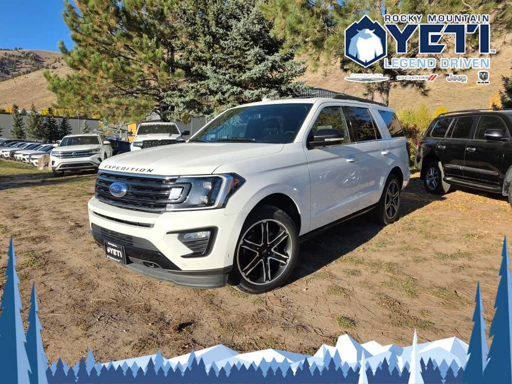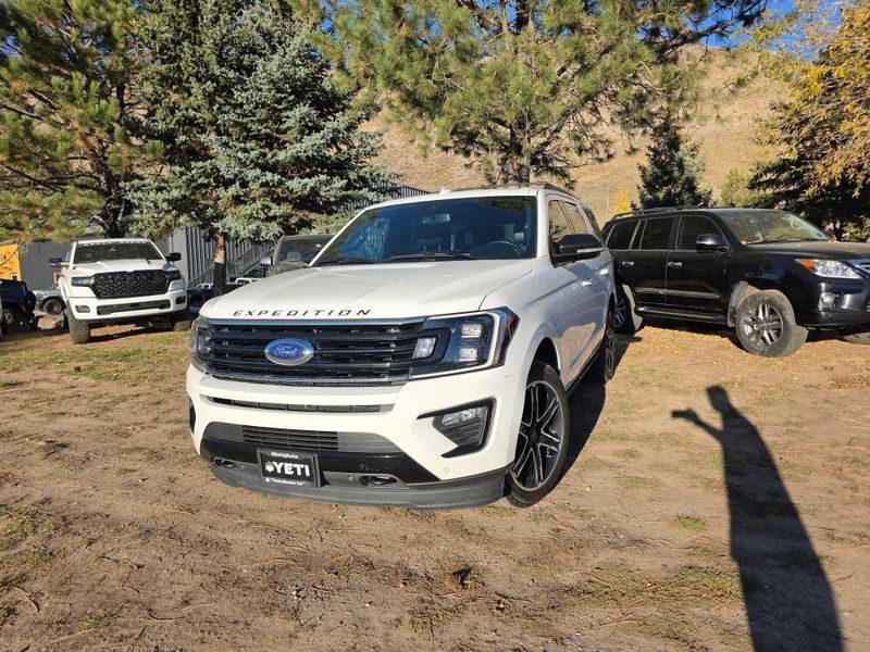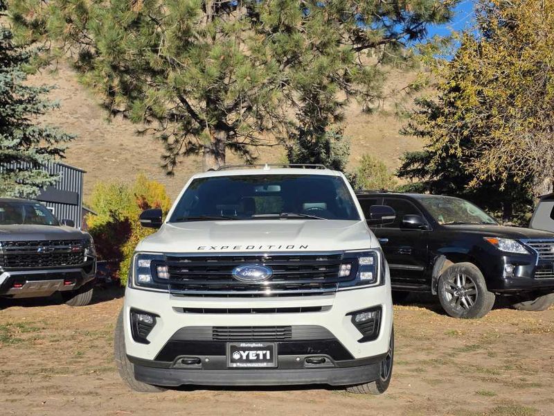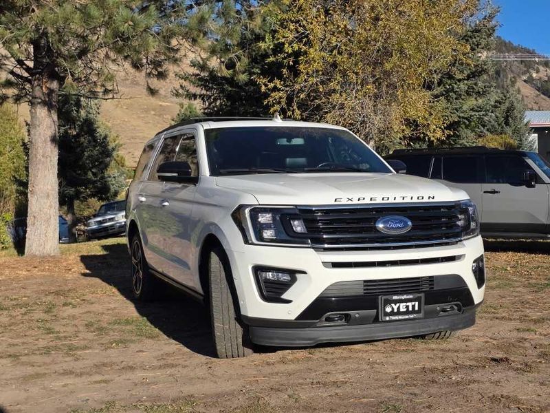 EQUIPMENT GROUP 303A Ford Co-Pilot360 Assist, Adaptive Cruise Control, stop-and-go, Voice-Activated Touch-Screen Navigation System, pinch-to-zoom capability, SiriusXM Traffic and Travel Link, SirusXM Traffic and Travel Link includes a, Stealth Edition Package, Expedition lettering on hood, black limited tailgate badge and front/second row floor mats w/logo, Black Roof Rack Side Rails, LED Taillamp w/Gloss Black Housing, LED Headlamps w/Gloss Black Housing, Gloss Black Tailgate Applique, LED Fog Lamps w/Gloss Black Bezels, Body Color Door Handles, Gloss Black Painted Rear Bumper Skid Plate, trailer hitch cover, Gloss Black Five-Bar Grille, Gloss Black Power Deployable Running Boards, Wheels: 22 Premium Black-Painted Aluminum, Continuous Controlled Damping (CCD), CONVENIENCE PACKAGE advanced cargo manager, Heavy-Duty Trailer Tow Package, Electronic Limited Slip w/3.73 Axle Ratio, Integrated Trailer Brake Controller, Heavy-Duty Engine Radiator, Pro Trailer Backup Assist, 2-Speed Automatic 4WD, neutral towing capacity, 2nd Row Outboard Inflatable Rear Safety Belts, Black Roof Rail Crossbars, 2ND ROW LEATHER-TRIMMED CAPTAINS CHAIRS W/ARMREST 7-passenger seating, TRANSMISSION: 10-SPEED AUTOMATIC W/SELECTSHIFT (STD), ENGINE: 3.5L ECOBOOST V6 auto start-stop technology (STD).