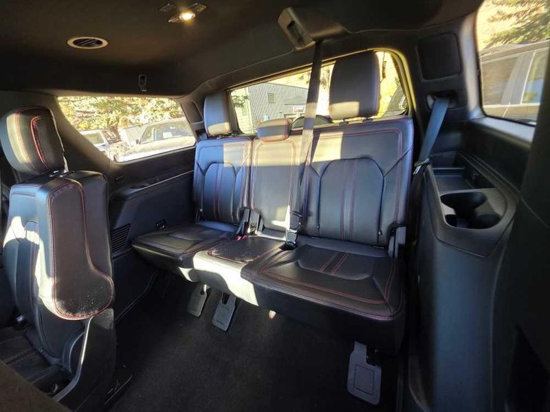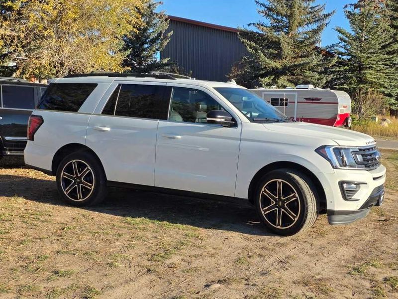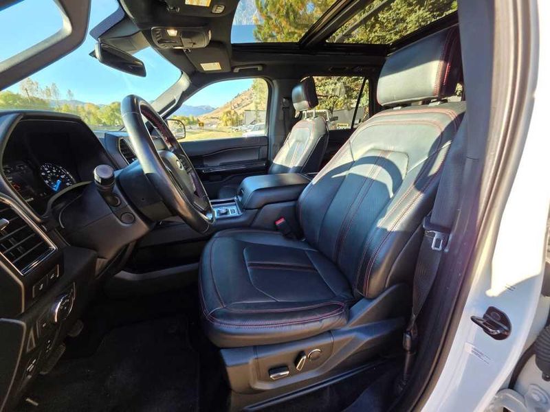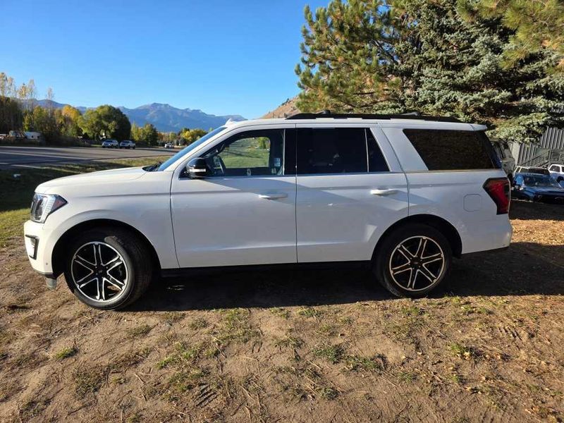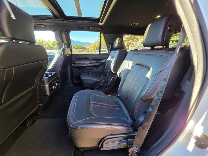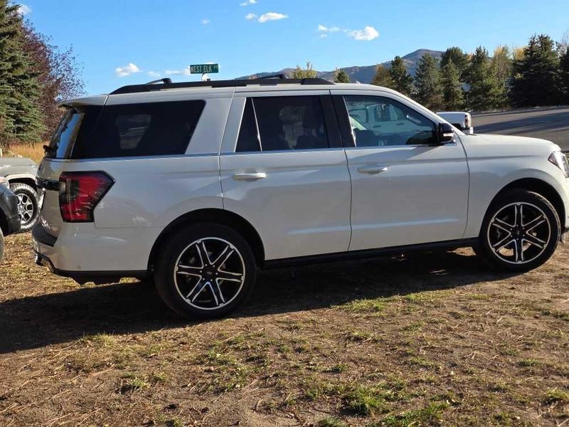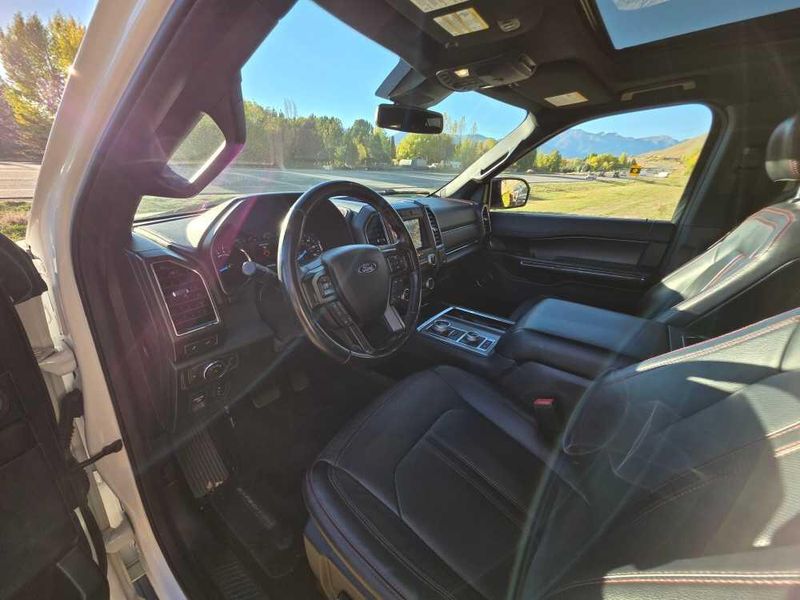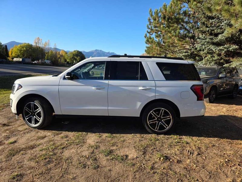 EQUIPMENT GROUP 303A Ford Co-Pilot360 Assist, Adaptive Cruise Control, stop-and-go, Voice-Activated Touch-Screen Navigation System, pinch-to-zoom capability, SiriusXM Traffic and Travel Link, SirusXM Traffic and Travel Link includes a, Stealth Edition Package, Expedition lettering on hood, black limited tailgate badge and front/second row floor mats w/logo, Black Roof Rack Side Rails, LED Taillamp w/Gloss Black Housing, LED Headlamps w/Gloss Black Housing, Gloss Black Tailgate Applique, LED Fog Lamps w/Gloss Black Bezels, Body Color Door Handles, Gloss Black Painted Rear Bumper Skid Plate, trailer hitch cover, Gloss Black Five-Bar Grille, Gloss Black Power Deployable Running Boards, Wheels: 22 Premium Black-Painted Aluminum, Continuous Controlled Damping (CCD), CONVENIENCE PACKAGE advanced cargo manager, Heavy-Duty Trailer Tow Package, Electronic Limited Slip w/3.73 Axle Ratio, Integrated Trailer Brake Controller, Heavy-Duty Engine Radiator, Pro Trailer Backup Assist, 2-Speed Automatic 4WD, neutral towing capacity, 2nd Row Outboard Inflatable Rear Safety Belts, Black Roof Rail Crossbars, 2ND ROW LEATHER-TRIMMED CAPTAINS CHAIRS W/ARMREST 7-passenger seating, TRANSMISSION: 10-SPEED AUTOMATIC W/SELECTSHIFT (STD), ENGINE: 3.5L ECOBOOST V6 auto start-stop technology (STD).