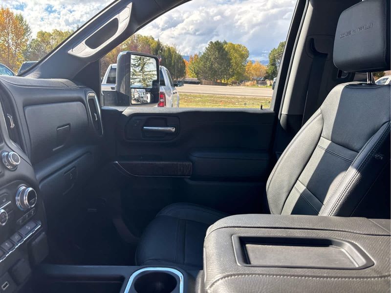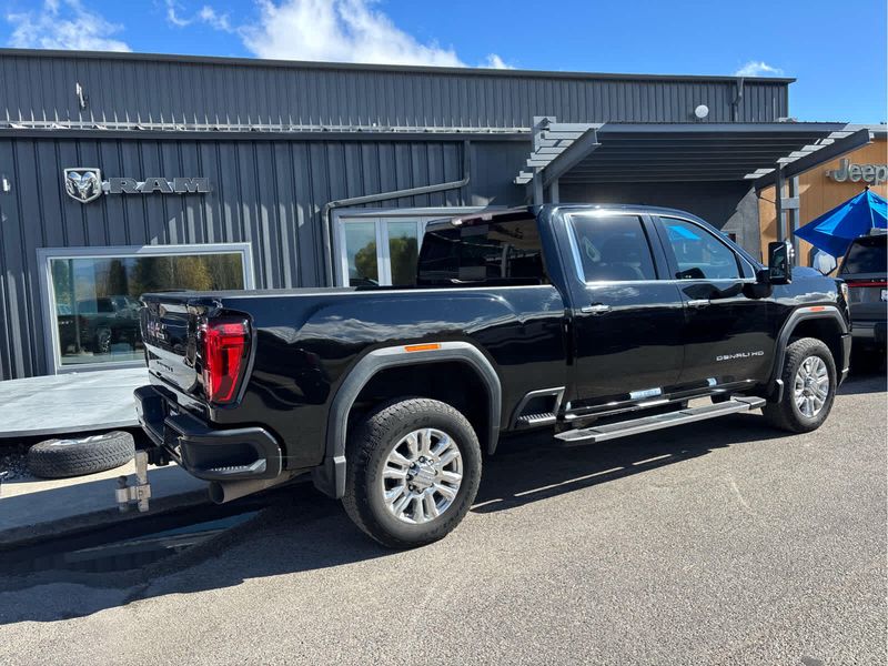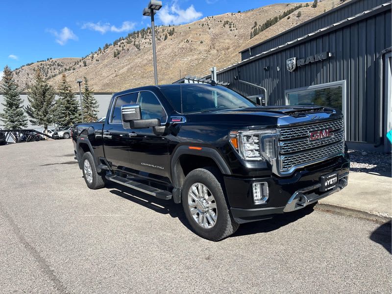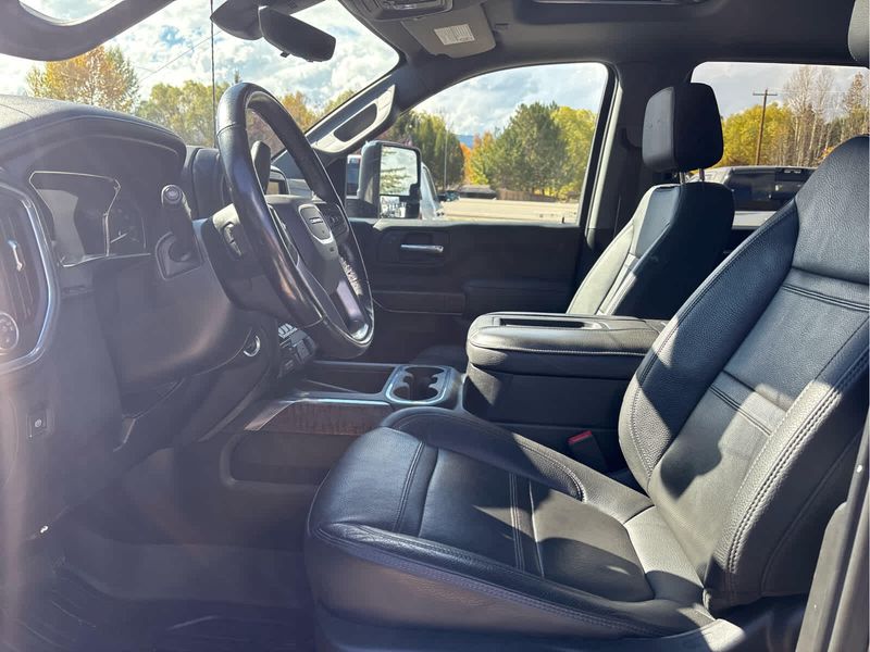 Onyx Black exterior and Jet Black interior. CARFAX 1-Owner. Heated/Cooled Leather Seats, NAV, Bed Liner, Heated Rear Seat, 4x4, Turbo, Alloy Wheels, ENGINE, DURAMAX 6.6L TURBO-DIESEL V8, B20-DIESEL COMPATIBLE, AUDIO SYSTEM, PREMIUM GMC INFOTAINMENT SYSTEM WITH NAVIGATION AND 8 DIAGONAL COLOR TOUCH-SCREEN, TRANSMISSION, ALLISON 10-SPEED AUTOMA... ENGINE, DURAMAX 6.6L TURBO-DIESEL V8... AUDIO SYSTEM, PREMIUM GMC INFOTAINMEN... TECHNOLOGY PACKAGE, Tow Hitch.