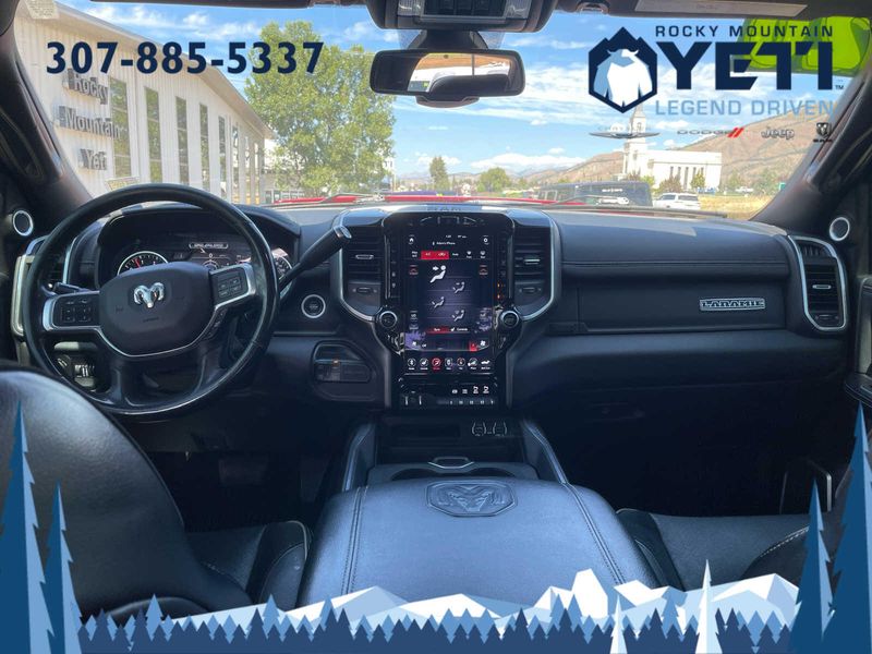 iPod/MP3 Input, Trailer Hitch, Dual Zone A/C, Smart Device Integration, WiFi Hotspot Ram Laramie with Flame Red Clearcoat exterior and Black interior features a Straight 6 Cylinder Engine with 370 HP at 2800 RPM*.