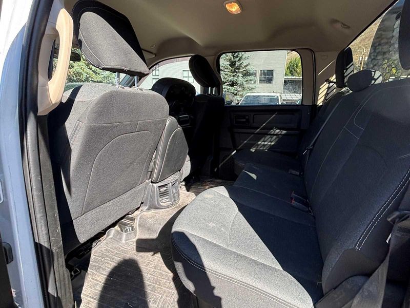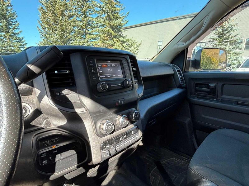 Bright White Clearcoat exterior and Black interior. CARFAX 1-Owner. Keyless Start, iPod/MP3 Input, 4x4, Turbo Charged, PARKVIEW REAR BACK-UP CAMERA, PARKSENSE REAR PARK ASSIST SYSTEM, RADIO: UCONNECT 3 W/5 DISPLAY, BLACK, CLOTH 40/20/40 BENCH SEAT, REMOTE KEYLESS ENTRY, ENGINE: 6.7L I6 CUMMINS TURBO DIESEL, TRANSMISSION: 6-SPEED AUTO AISIN AS69... QUICK ORDER PACKAGE 2YA TRADESMAN, DUAL REAR WHEELS.