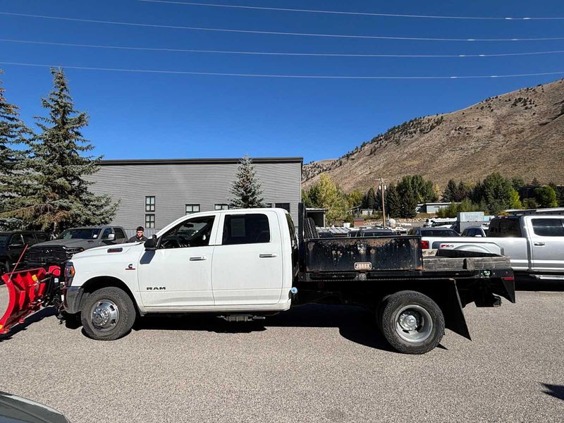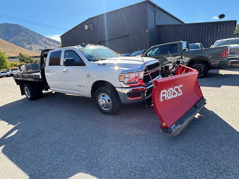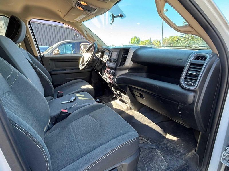 ENGINE: 6.7L I6 CUMMINS TURBO DIESEL Selective Catalytic Reduction (Urea), Dual 730 Amp Maintenance Free Batteries, Cummins Turbo Diesel Badge, Current Generation Engine Controller, Smart Diesel Exhaust Brake, Supplemental Heater, GVWR: 12,000 lbs, B-20 Bio Diesel Capability, TRANSMISSION: 6-SPEED AUTO AISIN AS69RC HD 3.73 Axle Ratio, DUAL REAR WHEELS Bright Wheel Skins, Tires: LT235/80R17E BSW All-Season, 11.50 Dual Wheels Rear Axle, 205mm HD Front Axle, Wheels: 17 x 6 Argent Steel, RADIO: UCONNECT 3 W/5 DISPLAY 5.0 Touchscreen Display, SiriusXM Satellite Radio, For More Info, Call 800-643-2112, GPS Antenna Input, Temperature & Compass Gauge, PARKVIEW REAR BACK-UP CAMERA Rear View Auto Dim Mirror w/Display, REMOTE KEYLESS ENTRY, BLACK, CLOTH 40/20/40 BENCH SEAT, PARKSENSE REAR PARK ASSIST SYSTEM, QUICK ORDER PACKAGE 2YA TRADESMAN Engine: 6.7L I6 Cummins Turbo Diesel, Transmission: 6-Speed Auto Aisin AS69RC HD, Urethane Shift Control, Halogen Quad Headlamps, Door Sill Scuff Pads, Glove Box, Exterior Mirrors w/Supplemental Signals, Map/Courtesy Lamp, Exterior Mirrors Courtesy Lamps, Trailer Tow Mirrors, Rear Dome Lamp, Exterior Mirrors w/Heating Element, Black Key Fob, Matte Black Grille Surround, Mirror Running Lights, Black Exterior Mirrors, Overhead Console, Overhead Cupholder Lamp, Power Black Trailer Tow Mirrors.