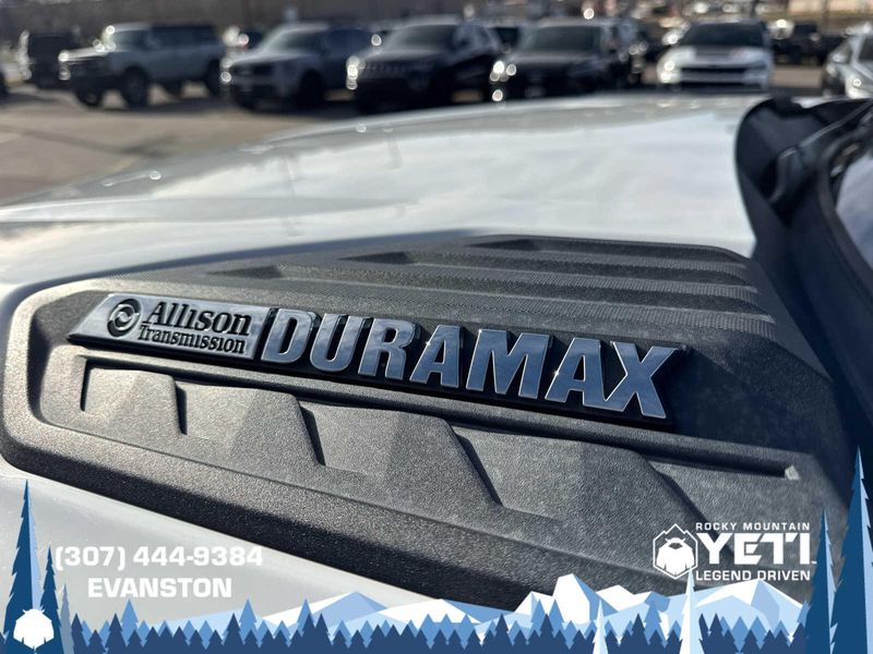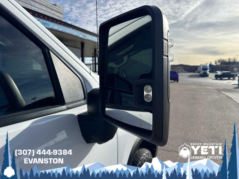 CONVENIENCE PACKAGE includes (CJ2) dual-zone automatic climate control, (A2X) 10-way power driver seat including power lumbar, (KA1) heated driver and passenger seats, (KI3) heated steering wheel, (N37) manual tilt/telescoping steering column, (C49) rear-window defogger, (AVJ) Keyless Open and Start, (NP5) leather-wrapped steering wheel, (N06) steering column lock, (BTV) Remote Start, (UTJ) content theft alarm, (UF2) bed LED cargo area lighting, (T3U) LED fog lamps, (B1J) rear wheelhouse liners, (AZ3) front 40/20/40 split-bench with under-seat storage, (KPA) auxiliary power outlet and (USS) 2 charge-only USB ports for second row, CONVENIENCE PACKAGE II includes (KI4) 120-volt power outlet, (KC9) 120-volt bed-mounted power outlet, (IOS) Chevrolet Infotainment System with 8 diagonal color touch-screen with (MCR) USB ports, SiriusXM with 360L, (U2L) HD Radio, (UVB) HD Rear Vision Camera, (PZ8) Hitch Guidance with Hitch View, (U1D) Advanced Trailering System, (A48) rear sliding power window, (UG1) Universal Home Remote and (R7O) Cloth Rear Seat with Storage Package, SAFETY PACKAGE includes (UD5) Front and Rear Park Assist, (UKC) Lane Change Alert with Side Blind Zone Alert and (UFG) Rear Cross Traffic Alert, ASSIST STEPS, CHROMED TUBULAR, 6 RECTANGULAR (factory installed), MIRRORS, OUTSIDE POWER-ADJUSTABLE VERTICAL TRAILERING WITH HEATED AND AUTO-DIMMING UPPER GLASS lower convex mirrors, turn signal indicators, puddle lamps, perimeter lighting, auxiliary lighting, power folding/manual extending (extends 3.31 [84.25mm]) Includes (DD8) auto-dimming rearview mirror. SEAT, CLOTH REAR WITH STORAGE PACKAGE, 60/40 FOLDING BENCH includes seatback storage on left and right side, center fold out armrest with 2 cupholders, (includes child seat top tether anchor), AUDIO SYSTEM, CHEVROLET INFOTAINMENT 3 PLUS SYSTEM, 8 DIAGONAL HD COLOR TOUCHSCREEN, AM/FM STEREO Bluetooth audio streaming for 2 active devices, wireless Apple CarPlay and Android Auto capable, voice recognition, in-vehicle apps, cloud connected personalization for select infotainment and vehicle settings. Subscription required for enhanced and connected services after trial period. Includes (PZ8) Hitch Guidance with Hitch View.), TRANSMISSION, ALLISON 10-SPEED AUTOMATIC, GOOSENECK / 5TH WHEEL PREP PACKAGE -- Hitch platform to accept Gooseneck or 5th Wheel hitch. Includes hitch platform with tray to accept ball, stamped bed holes with removable caps installed and bed mounted 7-pin trailer harness (similar to UY2 harness).