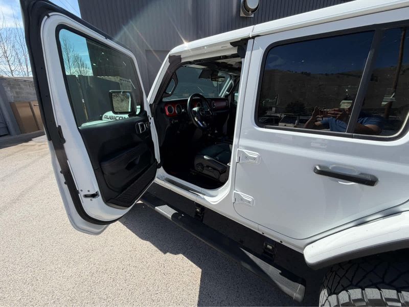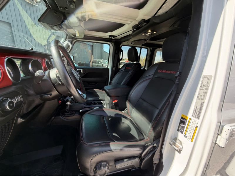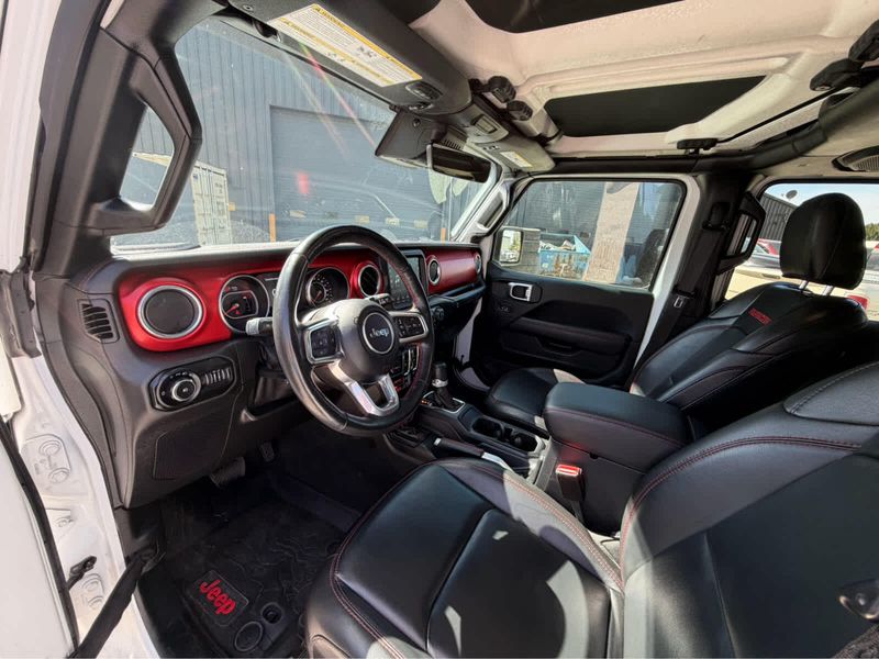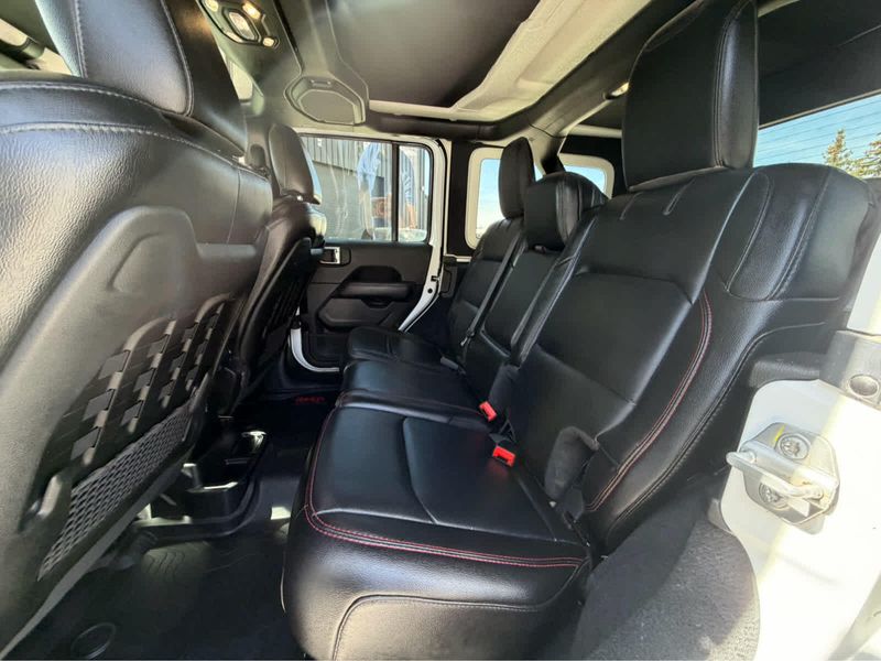 Unlimited Rubicon trim, Bright White Clearcoat exterior and Black interior. EPA 24 MPG Hwy/21 MPG City! Heated Leather Seats, CD Player, iPod/MP3 Input, Back-Up Camera, 4x4, Turbo Charged Engine, Aluminum Wheels, Hitch, REMOTE START SYSTEM, BODY COLOR 3-PIECE HARD TOP, ENGINE: 2.0L I4 DOHC DI TURBO W/ESS, TRANSMISSION: 8-SPEED AUTOMATIC (850R... BLACK, LEATHER TRIMMED BUCKET SEATS, ADVANCED SAFETY GROUP, SAFETY GROUP, 8.4 RADIO & PREMIUM AUDIO GROUP, TRAILER TOW & HD ELECTRICAL GROUP, COLD WEATHER GROUP, LED LIGHTING GROUP, REMOTE PROXIMITY KEYLESS ENTRY.