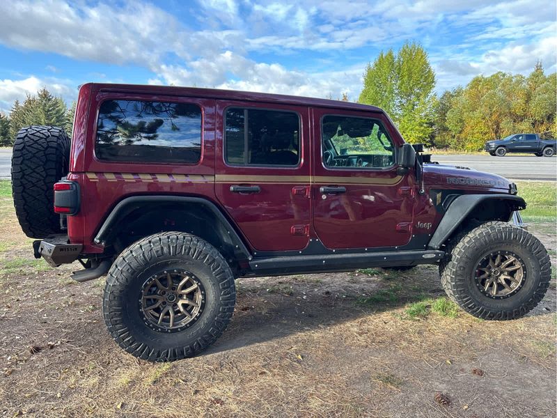 XTREME RECON 35 TIRE PACKAGE Tires: LT315/70R17C 113/110S, 110 MPH Vehicle Max Speed Calibration, Wheels: 17 x 8 Bronze Beadlock Capable, Wheel Flare Extensions, MOPAR Tire Relocation Kit, 35 Tire Rubicon 392 Suspension, MOPAR Hinge-Gate Reinforcement, MOPAR Jack Spacer, 4.56 Rear Axle Ratio, SKY 1-TOUCH POWER TOP Removable Rear Quarter Windows, Power Top Quarter Window Storage Bag, TRAILER TOW PACKAGE Class II Receiver Hitch, 7 & 4 Pin Wiring Harness, TRANSMISSION: 8-SPEED AUTOMATIC (8HP75) (STD), ENGINE: 6.4L V8 SRT HEMI MDS (STD).