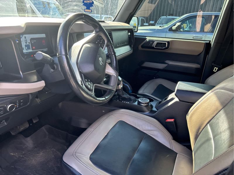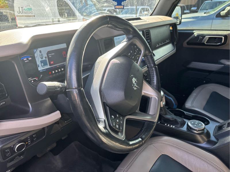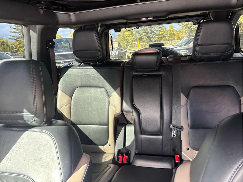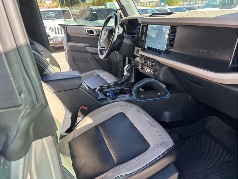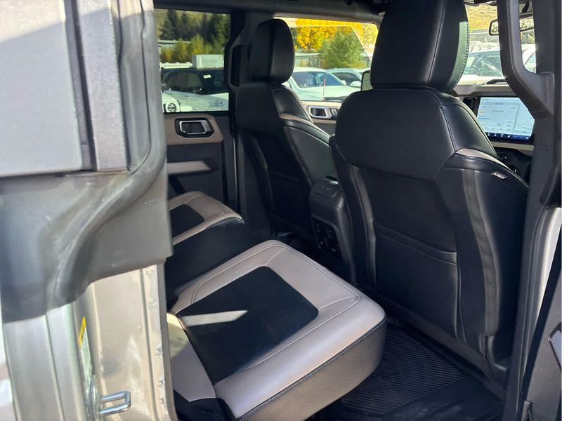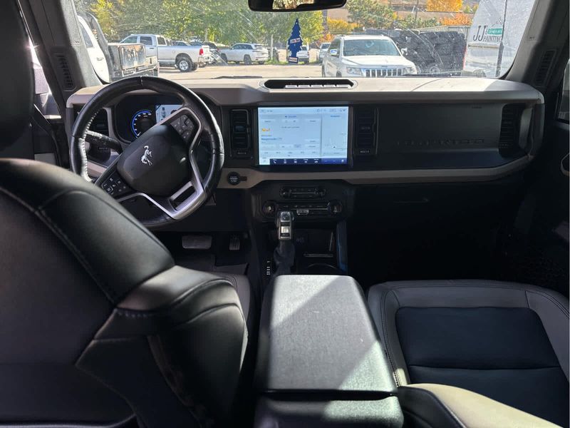 EQUIPMENT GROUP 354A LUX PACKAGE 2 Smart Charging USB Ports In Dashboard, 1 A and 1 C, 12 LCD Capacitive Touchscreen w/Swipe Capability, Evasive Steering Assist, Heated Steering Wheel, Adaptive Cruise Control, Additional Sound Deadening, Information on Demand Panel, Wireless Charging Pad, Radio: B&O Sound System by Bang & Olufsen, 10 speakers including subwoofer, Front Parking Sensors, 360-Degree Camera, Universal Garage Door Opener, Sideview Mirrors, LED approach lamps and LED spotlight, Connected Built-In Navigation, 3 years of service, pinch-to-zoom capability, live traffic, predictive destinations and route guidance, Navigation service requires SYNC4 and FordPass Connect, complimentary connect service and the FordPass app (see FordPass Terms for details), Customer receives a, MEDIUM SANDSTONE W/BLACK, HEATED LEATHER-TRIMMED/VINYL BUCKET SEATS 10-way power driver seat, 8-way front passenger seat and second row armrest w/2 beverage holders, CARBONIZED GRAY MOLDED-IN-COLOR HARD TOP Rear-Window Defroster & Washer, Hard Top Sound Deadening Headliner, Front Row Top Panels Storage Bag, For on-vehicle storage, TOWING CAPABILITY, TRANSMISSION: 10-SPEED AUTOMATIC trail control, trail turn assist and trail one-pedal driving (STD).
