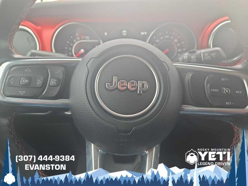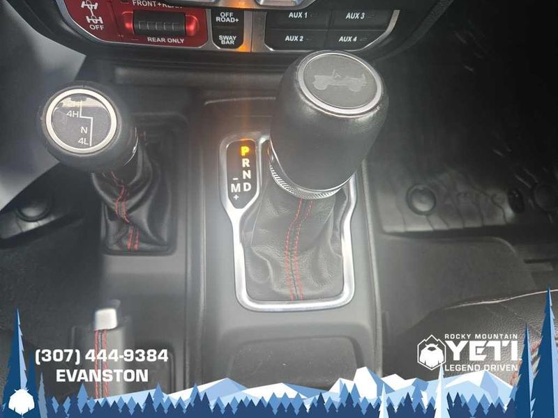 TRANSMISSION: 8-SPEED AUTOMATIC (850RE) Tip Start, Selec-Speed Control, BLACK, LEATHER TRIMMED BUCKET SEATS Leather Wrapped Park Brake Handle, Leather Wrapped Shift Knob, Premium Door Trim Panel, BLACK 3-PIECE HARD TOP Freedom Panel Storage Bag, Rear Window Defroster, Rear Window Wiper/Washer, No Soft Top, COLD WEATHER GROUP Heated Steering Wheel, Heated Front Seats, SAFETY GROUP ParkSense Rear Park Assist System, Blind Spot & Cross Path Detection, TRAILER TOW & HD ELECTRICAL GROUP Class II Receiver Hitch, 700 Amp Maintenance Free Battery, 7 & 4 Pin Wiring Harness, 240 Amp Alternator, Auxiliary Switches, ENGINE: 3.6L V6 24V VVT ETORQUE UPG I 600 Amp Maintenance Free Battery, 48V Belt Starter Generator, Delete Alternator, REMOTE START SYSTEM.