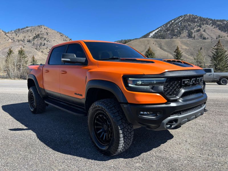 TRX trim, Ignition Orange Clearcoat exterior and Black interior. Heated Seats, Nav System, Hitch, Bluetooth, iPod/MP3 Input, Satellite Radio, 4x4, Bed Liner, REMOTE START SYSTEM, MOPAR OFF-ROAD STYLE RUNNING BOARDS, ENGINE: 6.2L SUPERCHARGED HEMI V8 SRT... TRANSMISSION: 8-SPEED AUTOMATIC (8HP9... TRX IGNITION EDITION, TRX LEVEL 2 EQUIPMENT GROUP.