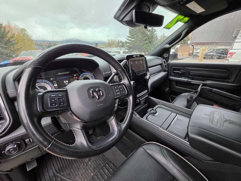 ENGINE: 6.7L I6 CUMMINS TURBO DIESEL Selective Catalytic Reduction (Urea), Dual 730 Amp Maintenance Free Batteries, Cummins Turbo Diesel Badge, Heavy Duty Engine Cooling, Supplemental Heater, 220 Amp Alternator, GVWR: 12,300 lbs, Current Generation Engine Controller, Diesel Exhaust Brake, Capless Fuel Fill w/o Discriminator, Distribution Services Tracking, LIMITED LEVEL 1 EQUIPMENT GROUP 17 Speaker harman/kardon Premium Sound, CTR Stop Lamp w/Cargo View Camera, Surround View Camera System, Adaptive Cruise Control w/Stop, Trailer Reverse Guidance, Digital Rearview Mirror, Adaptive Steering System, Full Speed Forward Collision Warning Plus, Lane Keep Assist, DUAL REAR WHEELS Clearance Lamps, Tires: LT235/80R17E BSW AS, 17 Steel Spare Wheel, Box & Rear Fender Clearance Lamps, 6000# Front Axle w/Hub Ext, Wheels: 17 x 6.0 Polished Aluminum, GVWR: 14,000 lbs, PAINTED FLAT CAB-LENGTH SIDE STEPS, TRANSMISSION: 6-SPEED AUTOMATIC 68RFE Leather Wrapped Shift Control.