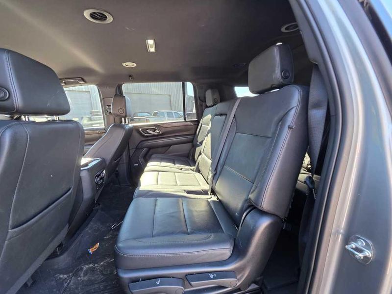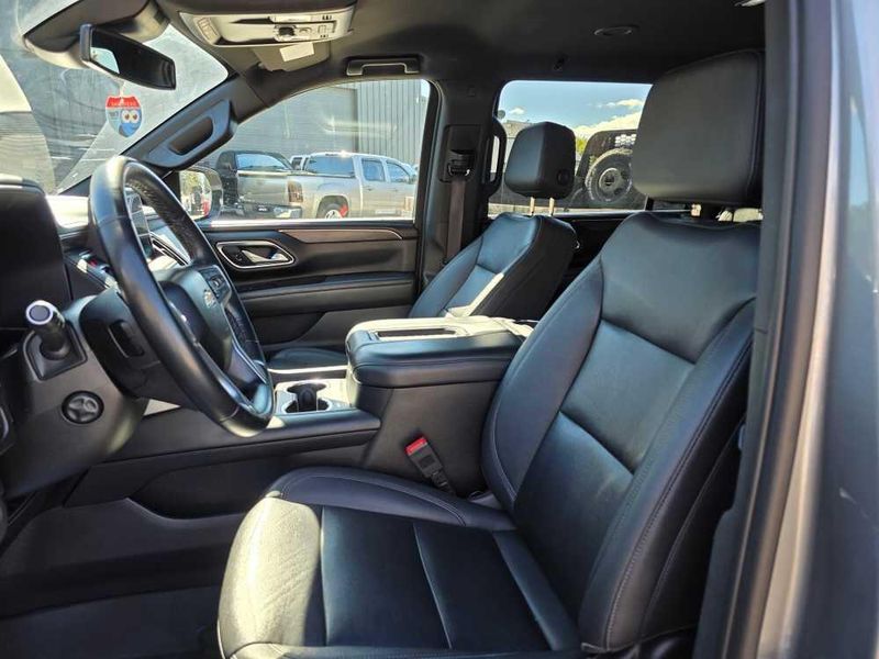 Sterling Gray Metallic exterior and Jet Black interior. CARFAX 1-Owner. Heated Leather Seats, 3rd Row Seat, NAV, Power Liftgate, 4x4, Alloy Wheels, Tow Hitch, DRIVER ALERT PACKAGE, TRANSMISSION, 10-SPEED AUTOMATIC, ENGINE, 5.3L ECOTEC3 V8, STEERING WHEEL, HEATED, AUDIO SYSTEM, CHEVROLET INFOTAINMENT.. LUXURY PACKAGE.