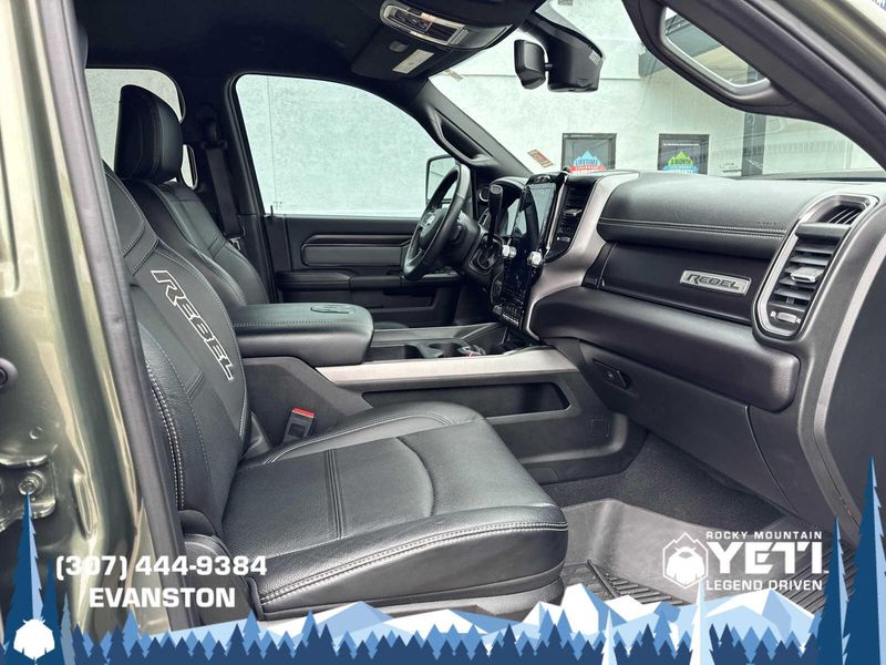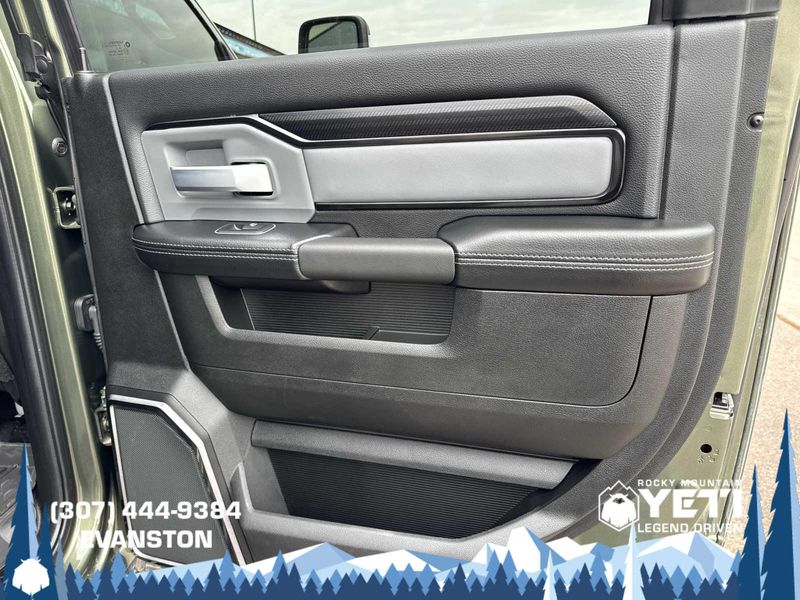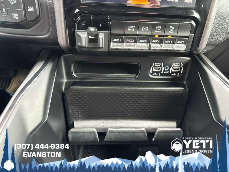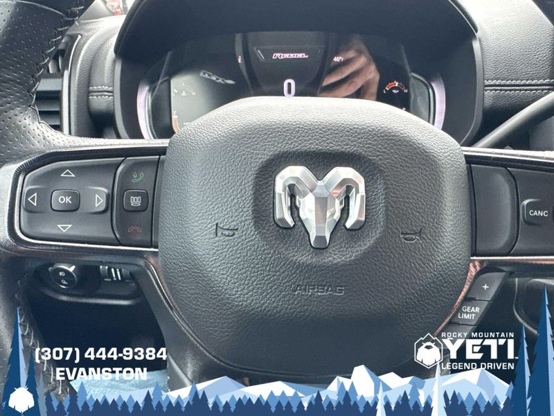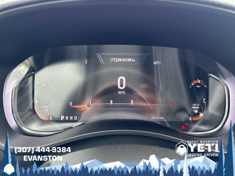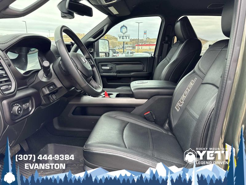 ENGINE: 6.7L I6 CUMMINS TURBO DIESEL Selective Catalytic Reduction (Urea), Dual 730 Amp Maintenance Free Batteries, Cummins Turbo Diesel Badge, Heavy Duty Engine Cooling, Diesel Exhaust Brake, Supplemental Heater, Front Bumper Sight Shields, Fuel Tank Brush Guard, Capless Fuel Fill w/o Discriminator, LEVEL 1 EQUIPMENT GROUP Power Adjustable Pedals w/Memory, For Details, Visit DriveUconnect.com, For More Info, Call 800-643-2112, 12 Touchscreen Display, Auto Power-Folding Mirrors, Mirror Running Lights, Alexa Built-In, Security Alarm, Power Adjustable Convex Aux Mirrors, Premium Overhead Console, Forward & Reverse Utility Lights, 9 Alpine Speakers w/Subwoofer, Disassociated Touchscreen Display, LED Interior Lighting, LED Dome Lamp w/On/Off Switch, Rear Window Defroster, Rain Sensitive Windshield Wipers, Rear Power Sliding Window, Body Color Door Handles, GPS Navigation, Overhead LED Lamps, Exterior Mirrors w/Heating Element, Auto Dim Exterior Mirror, SiriusXM w/360L, Connected Travel & Traffic Services, Off-Road Information Pages, Selectable Tire Fill Alert, Trailer Tow Pages, HD Radio, WHEELS: 20 X 8.0 BLACK DIAMOND CUT ALUMINUM Black Wheel Center Hub, Tires: LT285/60R20E BSW AT, MOPAR SPRAY IN BEDLINER, BLIND SPOT & CROSS PATH DETECTION, BLACK, LEATHER-FACED BUCKET SEATS (PL) Bucket Seats, High Back Seats, Power 2-Way Passenger Lumbar Adjust, Ventilated Front Seats, 115V Auxiliary Rear Power Outlet, Media Hub w/2 Charge Only USBs, Heated Second Row Seats, Heated Front Seats, Heated Steering Wheel, Power Adjust 8-Way Front Passenger Seat, Front Seat Back Map Pockets, Radio/Driver Seat/Mirrors/Pedals Memory, Full Length Upgraded Floor Console, MOPAR BLACK TUBULAR SIDE STEPS, TRANSMISSION: 6-SPEED AUTOMATIC (68RFE) Urethane Shift Control, QUICK ORDER PACKAGE 2HR REBEL Engine: 6.7L I6 Cummins Turbo Diesel, Transmission: 6-Speed Automatic (68RFE), Conventional Differential Front Axle, Front Armrest w/Cupholders, Manual Adjust 4-Way Front Passenger Seat, Heated Front Seats, Heated Steering Wheel, Painted Semi-Texture Film Instrument Panel Bezels, Limited Slip Rear Differential w/Electronic Lock, Storage Tray, High Back Seats, 4x4 Badge, 220 Amp Alternator, Black Wheel Center Hub, Front Center Seat Cushion Storage, 18 Steel Spare Wheel.