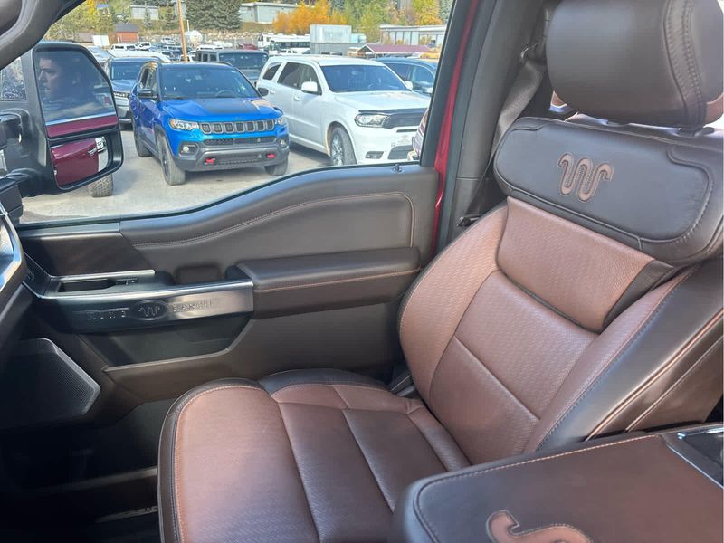 Leather Seats, Navigation, 4x4, Heated Driver Seat, Heated Rear Seat Ford King Ranch with Rapid Red Metallic Tinted Clearcoat exterior and Java interior features a 8 Cylinder Engine with 500 HP at 2600 RPM*.