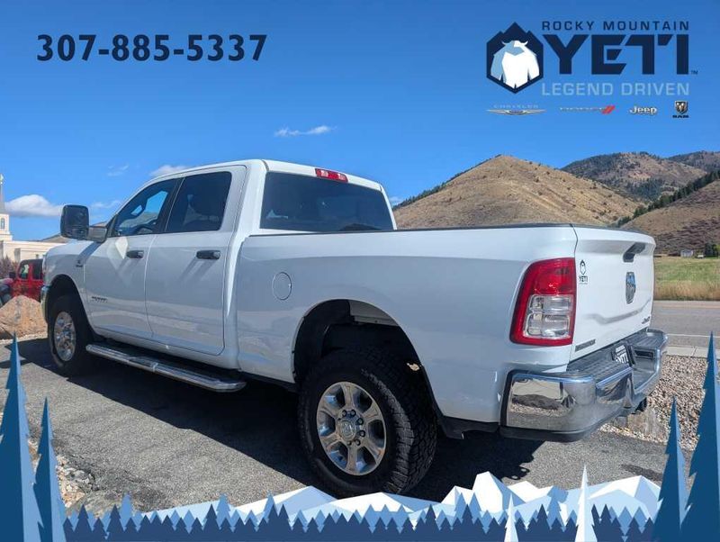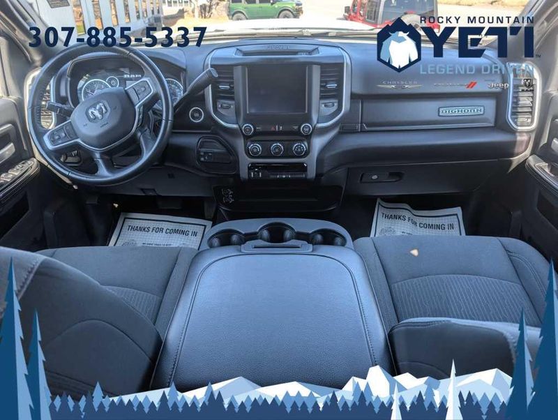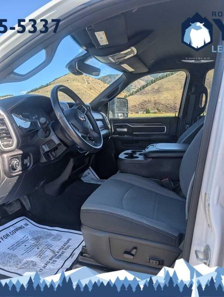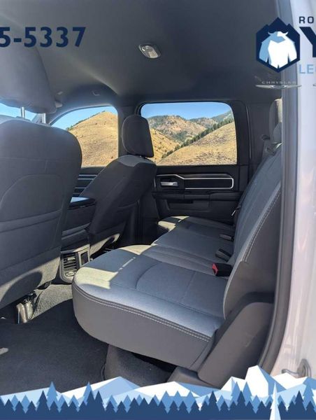 Selective Catalytic Reduction (Urea), Dual 730 Amp Maintenance Free Batteries, Cummins Turbo Diesel Badge, Heavy Duty Engine Cooling, Tow Hooks, Diesel Exhaust Brake, Supplemental Heater, Front Bumper Sight Shields, Capless Fuel Fill w/o Discriminator, Storage Tray, Rear 60/40 Folding Seat, Front Armrest w/Cupholders, Remote USB Port - Charge Only, Front Center Seat Cushion Storage, Manual Adjust 4-Way Front Passenger Seat, Power Adjust 8-Way Driver Seat, Front Seat Back Map Pockets, Power 2-Way Driver Lumbar Adjust, CHROME FLAT CAB-LENGTH SIDE STEPS, Google Android Auto, For Details, Visit DriveUconnect.com, For More Info, Call 800-643-2112, Leather Wrapped Steering Wheel, Rear Dome w/On/Off Switch Lamp, Front Fog Lamps, Glove Box Lamp, Auto Power-Folding Mirrors, Footwell Courtesy Lamp, 4G LTE Wi-Fi Hot Spot, Mirror Running Lights, Radio: Uconnect 5 W w/8.4 Display, 8.4 Touchscreen Display, Foam Bottle Insert (Door Trim Panel), Wheels: 18 x 8.0 Polished Aluminum, Apple CarPlay, Big Horn IP Badge, Power Adjustable Convex Aux Mirrors, Forward & Reverse Utility Lights, Locking Lower Glove Box, Selectable Tire Fill Alert, SiriusXM Satellite Radio, Power Heated Fold Telescope Mirrors, Exterior Mirrors w/Supplemental Signals, Steering Wheel Mounted Audio Controls, Exterior Mirrors Courtesy Lamps, Dual Glove Boxes, 2nd Row In Floor, TRANSMISSION: 6-SPEED AUTOMATIC (68RFE).