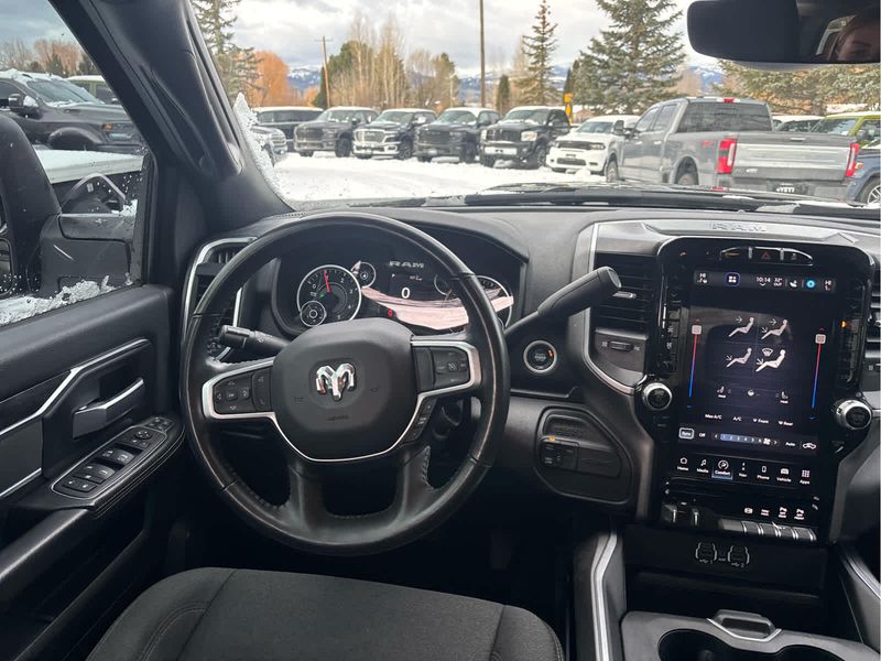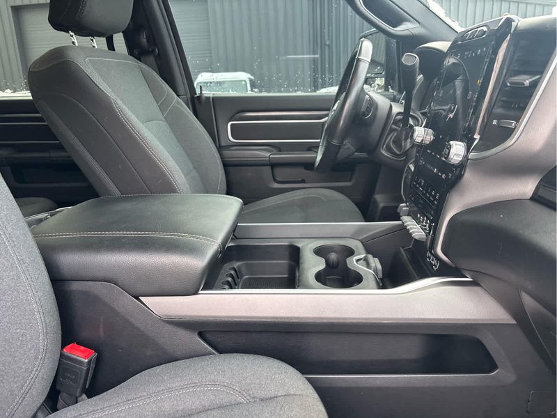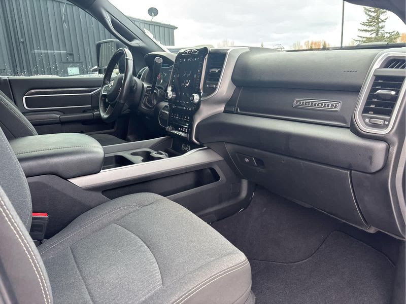 RADIO: UCONNECT 5 NAV W/12.0 DISPLAY Google Android Auto, Off-Road Information Pages, Selectable Tire Fill Alert, Trailer Tow Pages, Disassociated Touchscreen Display, HD Radio, For Details, Visit DriveUconnect.com, For More Info, Call 800-643-2112, 12 Touchscreen Display, Air Conditioning ATC w/Dual Zone Control, GPS Navigation, 4G LTE Wi-Fi Hot Spot, SiriusXM w/360L, All Radio Equipped Vehicles, Connected Travel & Traffic Services, All R1 High Radios, Alexa Built-In, Apple CarPlay, 9 ALPINE SPEAKERS W/SUBWOOFER, ANTI-SPIN DIFFERENTIAL REAR AXLE, HEATED SEATS & WHEEL GROUP Heated Steering Wheel, Steering Wheel Mounted Audio Controls, Heated Front Seats, Leather Wrapped Steering Wheel, BLACK, PREMIUM CLOTH BUCKET SEATS Bucket Seats, Manual Adjust 4-Way Front Passenger Seat, Power Adjust 8-Way Driver Seat, Rear 60/40 Folding Seat, Front Seat Back Map Pockets, Power 2-Way Driver Lumbar Adjust, Full Length Upgraded Floor Console, REMOTE START SYSTEM, LEVEL 1 EQUIPMENT GROUP Google Android Auto, For Details, Visit DriveUconnect.com, For More Info, Call 800-643-2112, Leather Wrapped Steering Wheel, Rear Dome w/On/Off Switch Lamp, Front Fog Lamps, Glove Box Lamp, Auto Power-Folding Mirrors, Footwell Courtesy Lamp, 4G LTE Wi-Fi Hot Spot, Radio: Uconnect 5 W w/8.4 Display, 8.4 Touchscreen Display, Foam Bottle Insert (Door Trim Panel), Wheels: 18 x 8.0 Polished Aluminum, Apple CarPlay, Big Horn IP Badge, Power Adjustable Convex Aux Mirrors, Forward & Reverse Utility Lights, Locking Lower Glove Box, Selectable Tire Fill Alert, SiriusXM Satellite Radio, Power Heated Fold Telescope Mirrors, Exterior Mirrors w/Supplemental Signals, Steering Wheel Mounted Audio Controls, Exterior Mirrors Courtesy Lamps, Dual Glove Boxes, 2nd Row In Floor, TRANSMISSION: 6-SPEED AUTOMATIC (68RFE).