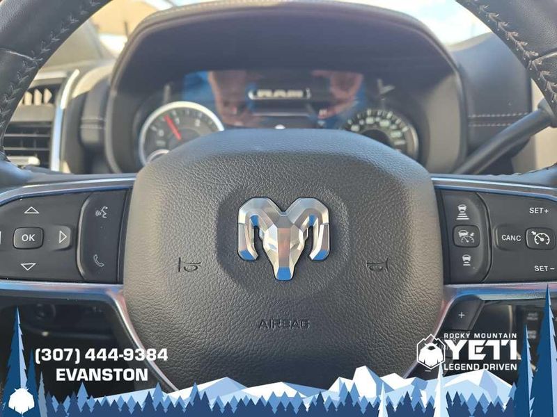 ENGINE: 6.7L I6 CUMMINS HO TURBO DIESEL Selective Catalytic Reduction (Urea), Dual 730 Amp Maintenance Free Batteries, Cummins Turbo Diesel Badge, Heavy Duty Engine Cooling, Supplemental Heater, 220 Amp Alternator, GVWR: 11,800 lbs, Current Generation Engine Controller, Diesel Exhaust Brake, Capless Fuel Fill w/o Discriminator, NIGHT EDITION Black RAM Head Tailgate Badge, Wheels: 20 x 8.0 Black Painted Aluminum, Black Headlamp Bezels, Sport Performance Hood, Black Wheel Center Hub, Tires: LT285/60R20E OWL On/Off Road, Black Exterior Truck Badging, Gloss Black Grille Billets/Accents, Body Color Grille Surround, Black Interior Accents, Black Tail Lamp Bezels, ParkSense Front/Rear Park Assist System, LARAMIE LEVEL B EQUIPMENT GROUP Blind Spot & Cross Path Detection, LED Tail Lamps, Power Adjustable Pedals w/Memory, 12 Touchscreen Display, Auto Power-Folding Mirrors, Front LED Fog Lamps, Mirror Running Lights, Forward & Reverse Utility Lights, Remote Tailgate Release, 17 Speaker harman/kardon Premium Sound, 2nd Row In Floor Storage Bins, Rear Window Defroster, Rain Sensitive Windshield Wipers, Rear Power Sliding Window, Auto Dimming Exterior Mirrors, Heated Second Row Seats, LED Reflector Headlamps, Foam Bottle Insert (Door Trim Panel), Wheels: 18 x 8 Polished Aluminum, Radio: Uconnect 5 Nav w/12.0 Display, Power Heat Fold Memory Telescopic Mirrors, Auto High Beam Headlamp Control, Chrome Exterior Mirrors, Exterior Mirrors w/Memory, Power Telescoping Mirrors, Auto Dimming Exterior, TOWING TECHNOLOGY GROUP CTR Stop Lamp w/Cargo View Camera, Surround View Camera System, Trailer Reverse Guidance, SAFETY GROUP Adaptive Cruise Control w/Stop, Adaptive Steering System, Full Speed Forward Collision Warning Plus, Lane Keep Assist, BLACK, LEATHER TRIMMED BUCKET SEATS Bucket Seats, Power 2-Way Passenger Lumbar Adjust, Power 2-Way Driver Lumbar Adjust, Full Length Upgraded Floor Console, TRANSMISSION: 6-SPEED AUTOMATIC AISIN AS69RC HD 12.0 Single Rear Wheel Axle, Urethane Shift Control, Transmission Oil Cooler.