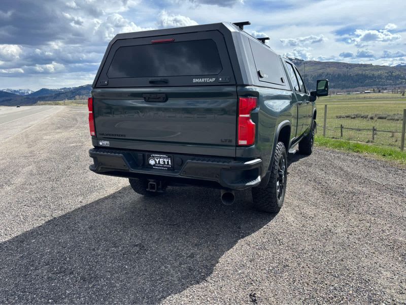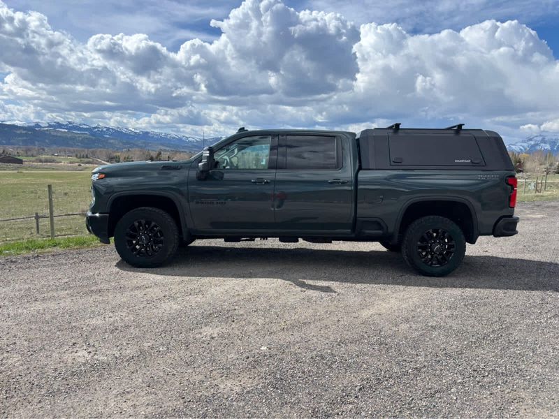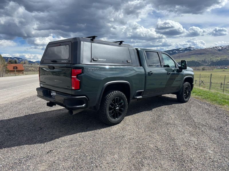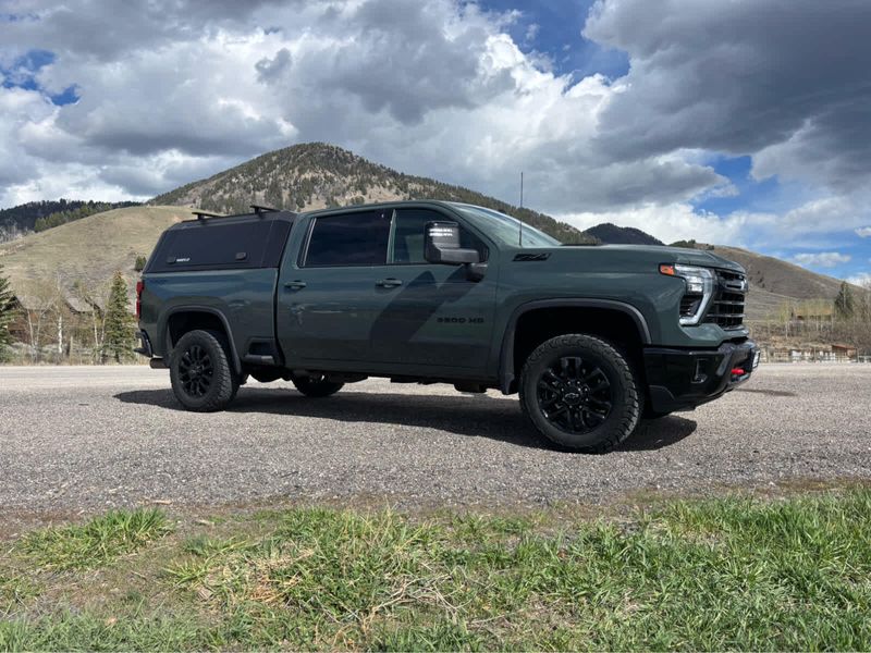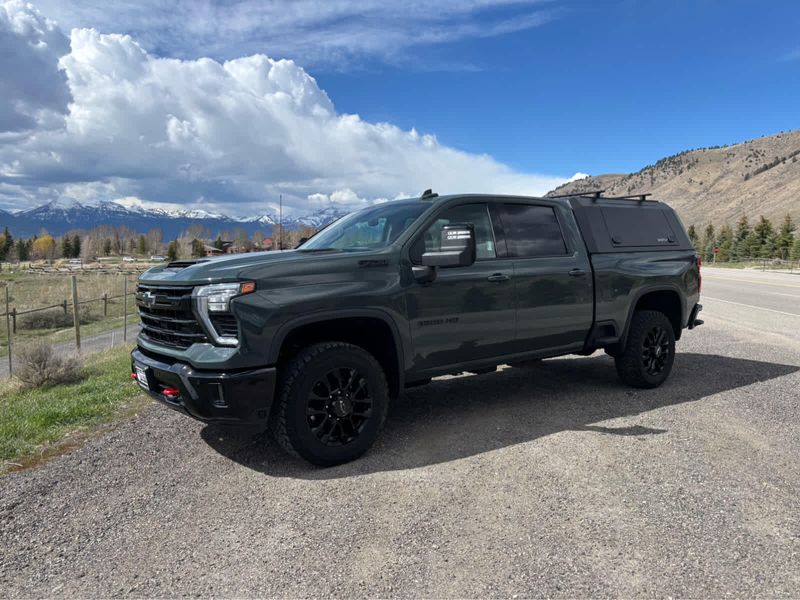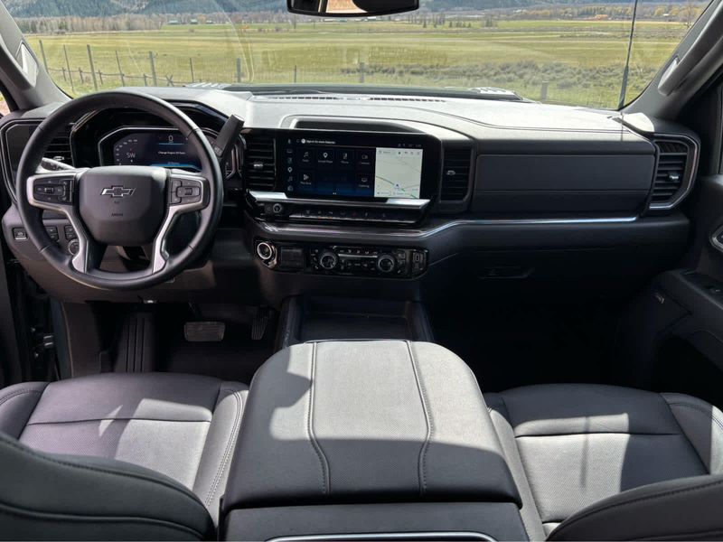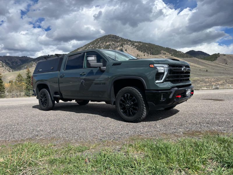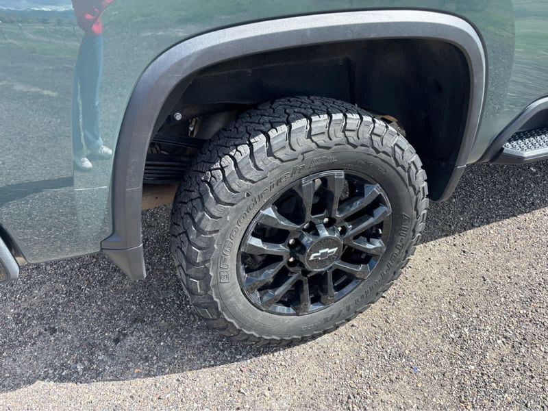 ENGINE, DURAMAX 6.6L TURBO-DIESEL V8, B20-DIESEL COMPATIBLE (470 hp [350.5 kW] @ 2800 rpm, 975 lb-ft of torque [1322 Nm] @ 1600 rpm), TRAIL BOSS PACKAGE includes black grille bar with Chevy Black Bow Tie, Black grille inserts, (SRI) 20 High gloss Black painted wheels, (VB5) High Gloss Black painted front bumper, (VT5) High Gloss Black painted rear bumper, (UGA) Red Tow Hooks, (QFG) LT275/65R20 BF Goodrich off-road tires, Black skid plate, Black badging, Black bowtie on horn pad, (DP6) High Gloss Black mirror caps, Black hood vent surround, and (CGN) Chevytec spray-on bedliner Includes Black beltline moldings, (D75) Body-colored painted door handles. When ordered with (QK2) Multi-Flex tailgate, will include Black tailgate bowtie. LTZ CONVENIENCE PACKAGE includes (A50) bucket seats with (D07) center console, (KQV) heated and ventilated front seats, (QT6) power up/down tailgate, (UF2) bed LED cargo area lighting, (UBC) USB Ports, (UQA) Bose Premium Audio System and (K4C) Wireless Charging, SAFETY PACKAGE includes (UD5) Front and Rear Park Assist, (UKV) Trailer Side Blind Zone Alert, (UFG) Rear Cross Traffic Alert, (UV2) HD Surround Vision, (UVN) Bed View Camera and (TRG) Trailer Camera Provisions Includes (HS1) Safety Alert Seat.), GOOSENECK / 5TH WHEEL PREP PACKAGE -- Hitch platform to accept Gooseneck or 5th Wheel hitch. Includes hitch platform with tray to accept ball, stamped bed holes with removable caps installed and bed mounted 7-pin trailer harness (similar to UY2 harness). (Includes (CGN) Chevytec spray-on bedliner.), LTZ CONVENIENCE PACKAGE II includes (A48) Rear sliding power window, (UG1) Universal Home Remote, (KA6) Rear heated seats and (KSG) Adaptive Cruise Control, AUDIO SYSTEM, CHEVROLET INFOTAINMENT 3 PREMIUM SYSTEM with Google built-in compatibility (select service plan required, terms and limitations apply) including navigation capability, 13.4 diagonal HD color touchscreen, includes multi-touch display, AM/FM stereo, Bluetooth streaming audio for music and most phones; featuring Wireless Apple CarPlay and Wireless Android Auto capability for compatible phones, advanced voice recognition, in-vehicle apps, personalized profiles for infotainment and vehicle settings (STD), TRANSMISSION, ALLISON 10-SPEED AUTOMATIC.